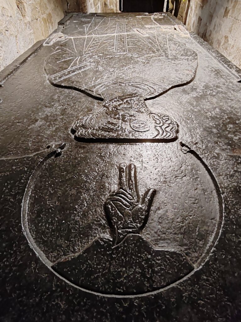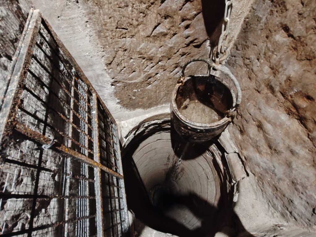 A notre époque moderne, l’eau a longtemps disparu du puits. Mais on a pu constater de nos yeux la présence d’eau tout au fond du puits en cet été 2025 ! Décidément, la Collégiale Saint-Piat nous réserve bien des surprises. Le retour de l’eau – encore plus précieuse de nos jours – n’est pas le moindre des trésors de la Collégiale !